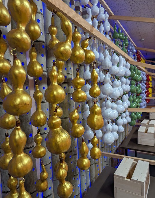 株式会社レスト関ヶ原が運営する観光テーマパーク「関ヶ原グルメガーデン」内の関ケ原合戦を再現したテーマパーク型資料館「関ヶ原ウォーランド」では、2024年12月20日(土)から約1,000個の瓢箪(ひょうたん)を展示する季節企画 「ひょうたん祭」 を初開催します。瓢箪は古来より「子孫繁栄」「魔除け・開運招福」「無病息災(六瓢息災)」「三拍子揃う」などの象徴であり、縁起物とされています。来年のNHKの大河ドラマは「豊臣兄弟」ですが、豊臣秀吉は馬印に瓢箪を用いており、戦勝のたびに瓢箪を1つずつ増やして千にすると誓った「千成瓢箪」の故事が有名です。本イベントでは瓢箪を約1,000個展示し、これまで展示してきた和傘や竹ランタンとともに、和の風景を楽しんでいただけます。瓢箪の豆知識や、豊臣秀吉の千成瓢箪物語について学べるコーナーも用意しています。また、金運アップを祈願する金色の1.8mの巨大瓢箪や、6色に色分けした”6つの瓢箪祈願所”で、新年の開運を祈願していただけます。