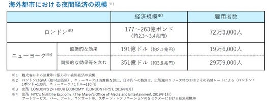 ロンドンやニューヨークのナイトタイム観光の夜間経済の規模は2兆円以上と試算。こうした効果は東京にも期待できるものであり、ナイトタイム観光の活性化は東京の国際競争力向上の「のびしろ」とも言えます。