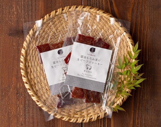 ・驚きの"生食感"もろみの旨味がガツン『醤油もろみ漬け生ビーフジャーキー』上質な国産黒毛和牛を醤油もろみに72時間漬け込み熟成させ仕上げたジャーキーです。