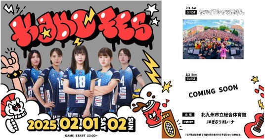 2025年2月1日(土)に北九州市立総合体育館で開催されるV.LEAGUE WOMAN北九州大会 JAぎふリオレーナ戦において、「ヤバイTシャツ屋さん」の出演が決まりましたので、お知らせいたします。