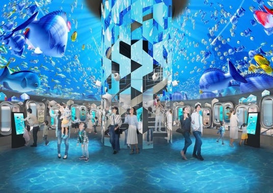 展望塔内の壁360度をスクリーンとする3DCGと照明・立体音響により海中に引き込まれるような没入感を感じられるショー演出を体験できます。