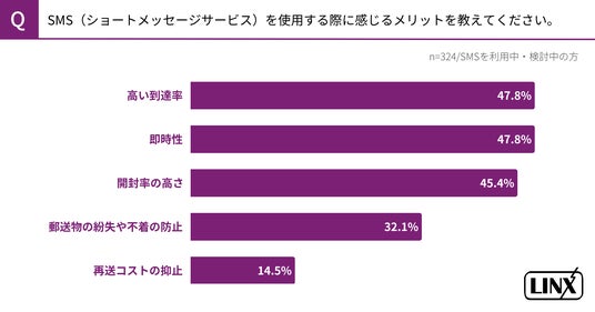 ・SMSのメリット、約5割が「高い到達率」「即時性」「開封率の高さ」を実感
