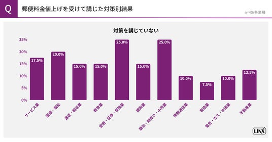 ・郵便料金値上げ対策未実施の理由、1位「特に理由はない」2位「導入コストが高い」3位「社内の合意形成に時間がかかる」「長年の商習慣」