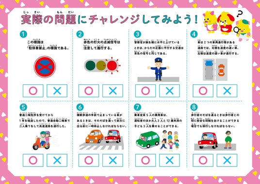 教習所の指導員監修のもと、実際の免許学科試験を想定した問題を「うんこ先生」が出題。