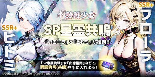 『熱戦少女』にて、SSR+憑依星霊「フローラ」と「ヒトミ」がSP星霊共鳴に登場いたします。