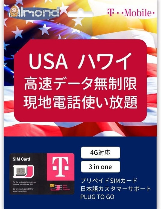 アメリカ(ハワイ含む)対応プリペイドSIMカード・5日間無制限データ