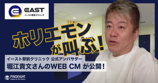 Pinoeight株式会社(本社:東京都港区、代表取締役:松山奨)は、全国の駅近に42院を展開するED治療のイースト駅前クリニック(医療法人社団イースト会)のED治療のプロモーションとして、堀江貴文さんを起用したWEBCMを制作し、5/12より順次公開いたします。