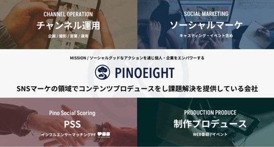 Pinoeight(ピノエイト)は、SNSマーケの領域でコンテンツプロデュースをし課題解決を提供している会社です。
