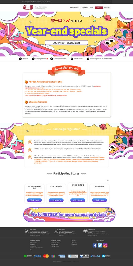 株式会社楽一番(本社:東京都新宿区)が展開する国際転送サービス「楽一番/Rakufun」(https://rakuichiban.co.jp/)は、株式会社SynaBiz(本社:東京都品川区)が運営する卸モール「NETSEA(ネッシー)」との越境販売の国際転送に関する公式連携を開始いたしました。