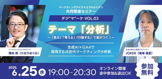 マーケティング戦略の専門家・理央 周氏と、デジタル実践のプロ・JOKER(馬場建至)氏がタッグを組んでお届けする『デジ"マ"ーケ03』が、2025年6月25日(水)に開催されます。