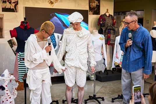 今回のコラボレーションでは、プチバトーの余剰在庫や規格外の素材を使い、エスモード・東京校の学生達が自由な発想でクリエイションを追求。33作品のユニークでファッション性の高い作品が完成しました。プチバトーのクリエイティブ・ディレクター、リディ・ド・ボープレによる審査が行われ、優秀作品に選ばれた3つのルックは、プチバトーブティック 代官山店と阪急うめだ本店POP UPにて展示されます。