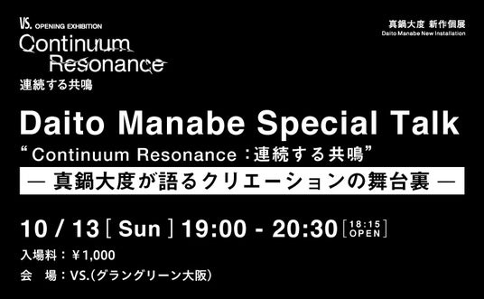 オープニングエキシビジョン 真鍋大度新作個展「Continuum Resonance:連続する共鳴」は2024年10月14日まで開催中。終了前日(10月13日)にスペシャルトークイベントを開催。