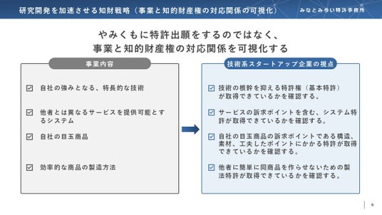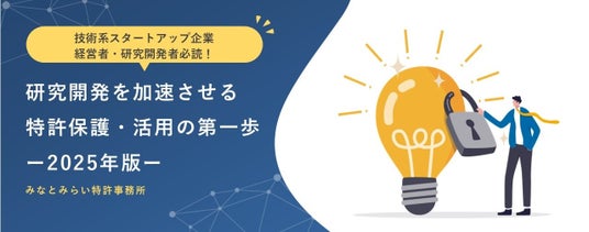 弁理士法人みなとみらい特許事務所(本社:神奈川県横浜市、代表:辻田朋子、以下「みなとみらい特許事務所」)は、技術系スタートアップに向け、研究開発を加速させる特許戦略に必要な視点を公開しました(無料)。