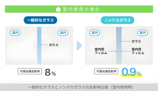 【新発売】光の反射や映り込みを大きく抑えた低反射ガラス「ノンテカガラス」販売開始