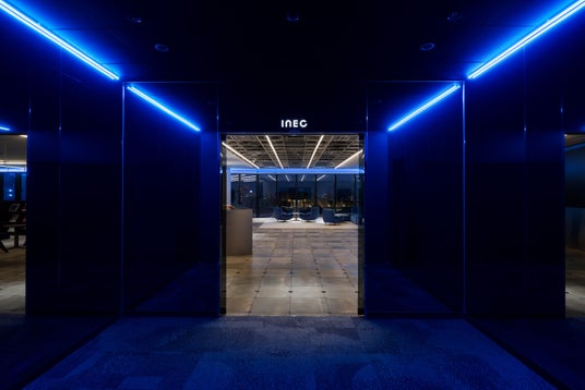 アイネックは、主に地方公共団体の施設における電気設備工事に始まり、その経験を生かした公共コンサルティング事業で成長してきました。2020年からはLED照明を利用した省エネルギーの普及に力を入れ、2021年にはカーボンニュートラルに関わる事業をスタート。地方公共団体に寄り添い、時代とともに変わる「電気と地域」の関係をリードしてきました。ポジティブなメッセージが随所に込められた新社屋について、代表取締役CEOの度会洋徳は次のように語ります。「私たちが発展していくことが、この国を脱炭素社会に導くことに繋がります。その実現に向け、常に挑戦者であるという気持ちを忘れず、ワクワクしながら社の発展を楽しみたい。楽しんでいることこそが、私たちの強さです。これからも常識にとらわれない価値観と感覚で、社会課題に立ち向かっていきます」。