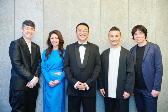左から、黒瀧節也 NOiR inc代表/サウンドデザイナー、田中タキ アイネック クリエイティブ・ディレクター、度会洋徳 アイネック代表取締役CEO、松浦竜太郎 乃村工藝社RENS 代表/クリエイティブディレクター、松尾高弘 LUCENT Inc代表/アーティスト