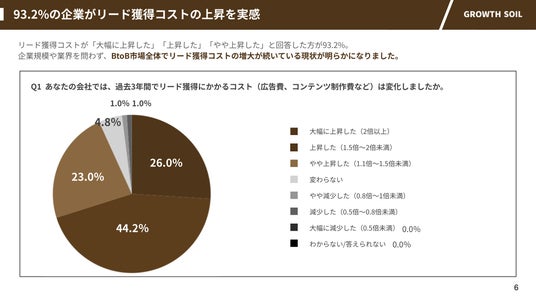 - リード獲得コストの上昇9割超がリード獲得コストの上昇を実感