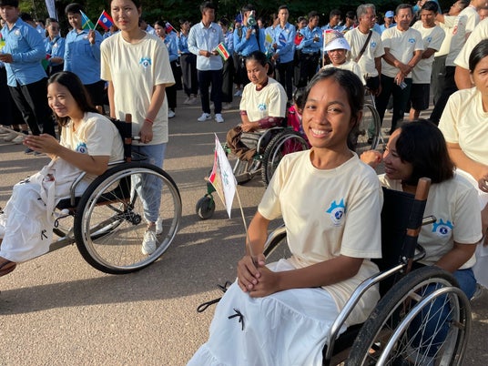 対人地雷禁止条約検討会議のスローガン「地雷のない世界」を訴えるためのマーチ。世界遺産であるアンコールワットを、リートイッ上級大臣兼カンボジア地雷対策犠牲者支援庁長官をはじめとするカンボジアの閣僚や各国代表団、地雷被害者や地元の子どもたちが約2時間かけて歩きました。日本政府からは市川とみ子軍縮会議日本政府代表部大使他、JICAからは安藤理事他が参加しました。