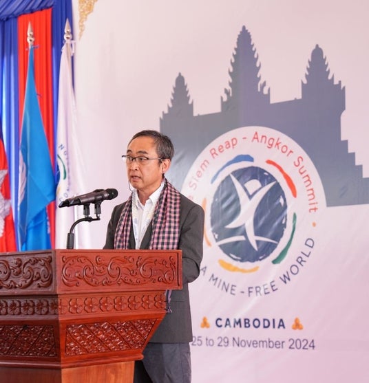11月にカンボジアで行われた対人地雷禁止条約第5回検討会議(通称オタワ会議)のサイドイベントでスピーチするJICA安藤理事