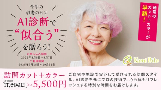 訪問理美容サービスKamiBitoでは、大切な人の笑顔を引き出す「カット+カラー」のプレゼントギフトキャンペーンを実施いたします。年に一度の貴重な機会です。ぜひこのチャンスをお見逃しなく!