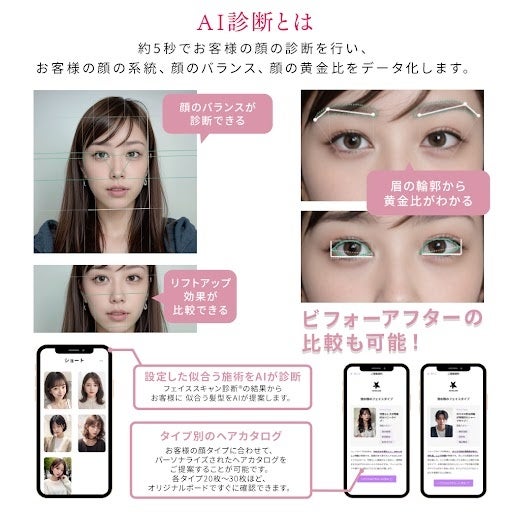 02.AIによる顔診断と理美容師によっての“似合う”をご提案最新のAI技術でお客様のお顔のバランス、黄金比を瞬時に分析。