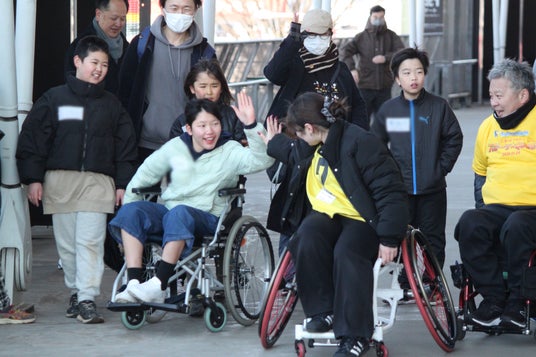 1人50mほどを車いすで走りました