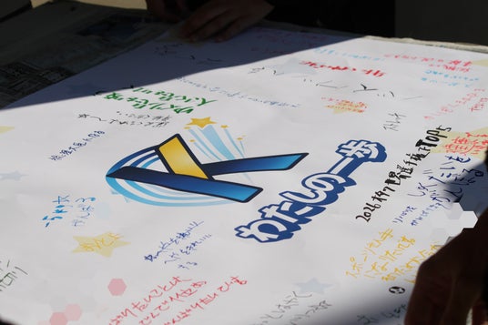 各種スポーツ体験と同じ時間帯に、「わたしの一歩」というコーナーも実施しました。本コーナーでは、きっかけプロジェクトのロゴがプリントされた模造紙を用意し、参加者が「これから挑戦してみたいこと」や「夢・目標」を言葉にする場を設けました。