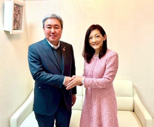 島精機製作所の代表取締役社長 島三博さま、弊社代表取締役 三井桂子