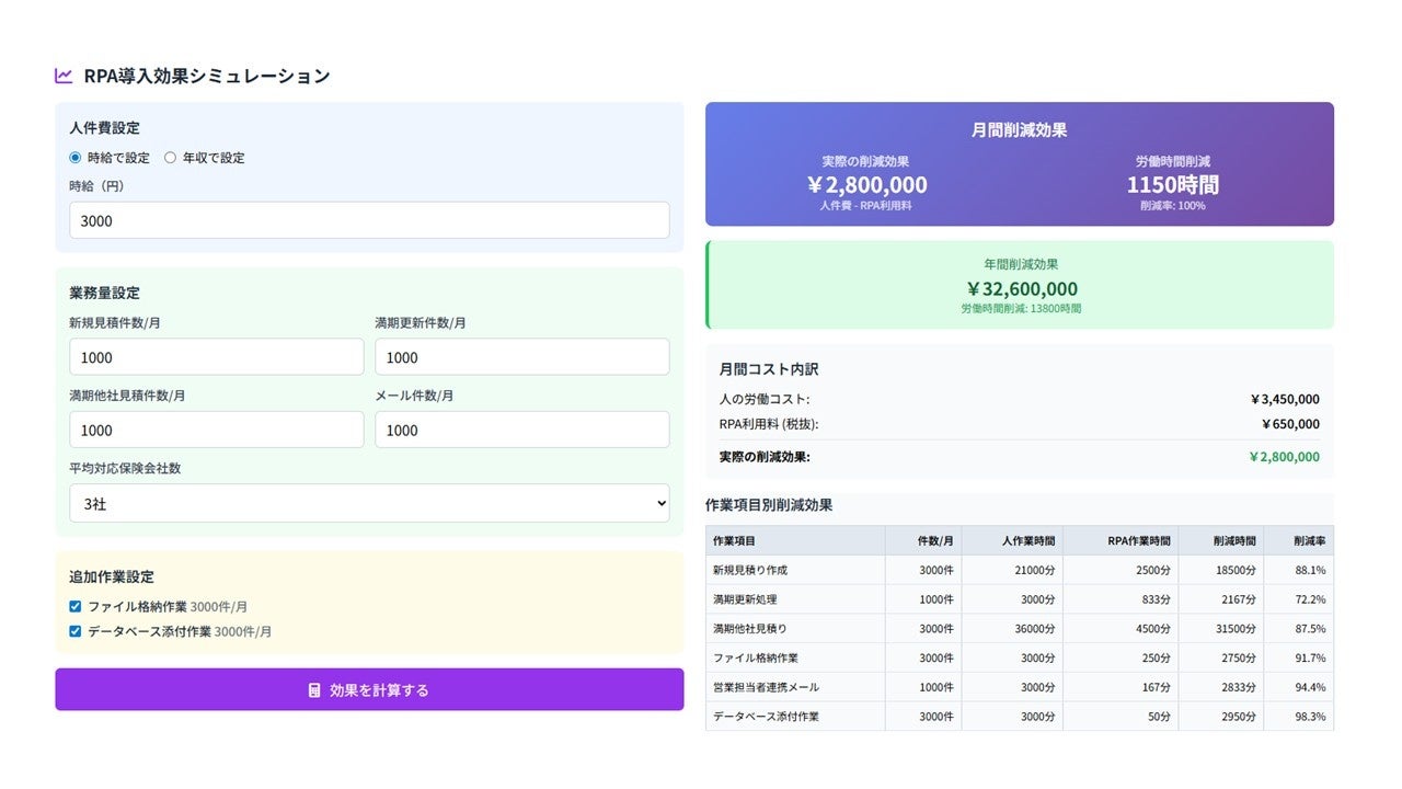 株式会社アイ・エフ・クリエイト(本社:東京、代表取締役:小川真一)は、保険代理店業務に特化したGAINA Automation RPAの導入効果を即時算出するWebシミュレーションツールを公開しました。