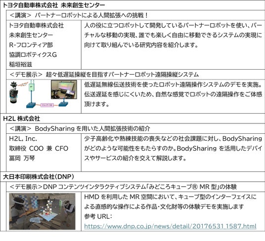 ※ 講演、デモ展示ともに本リリース発表時点の情報であり、変更の可能性があります。