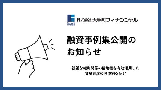 株式会社大手町フィナンシャル(本社:東京都千代田区、以下「当社」)は、借地権付き建物を担保にした資金調達の具体例をまとめた「融資事例集」を本日公開しました。本事例集は、借地権付き建物を所有する方の多様な課題やニーズに応えるための具体的な解決策を提案する内容となっています。