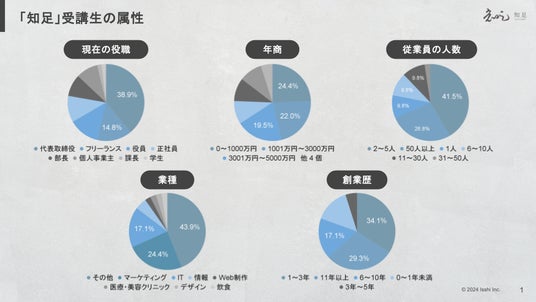 役職は代表取締役が最も多く、マーケティングやIT業界出身者が中心。年商・従業員規模・創業年数も幅広く、多様な立場の受講生が在籍しています。