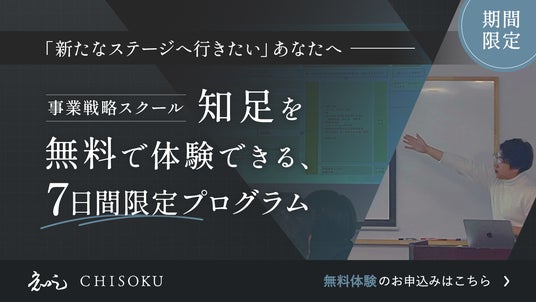 株式会社一絲は、CEO・COO・CMOのビジネスレベルの戦略人材を育成する実践型オンラインスクール「知足(CHISOKU)」の【 7日間無料体験プログラム 】を、期間限定で開始しております。