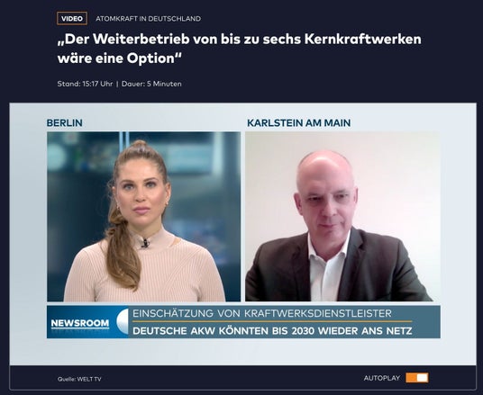 NUKEM CEO、Bild紙のインタビューでドイツの原子力復活の『現実的可能性』を指摘