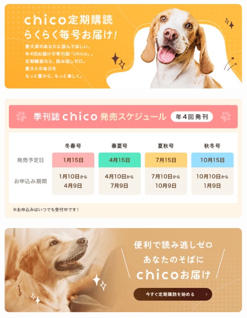 忙しい日々の中でも、確かな情報と癒しのひとときをお届けする『chico』の定期購読サービスをぜひご活用ください。