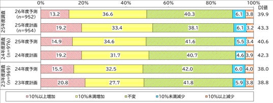「増加」から「減少」を差し引いた指標であるDI値(*2)は43.3ポイントとなり、新型コロナの影響で落ち込んだ2020年度以降、5年連続で上昇しました。26年度予測のDI値も39.9ポイントと、高水準を維持しており、上昇基調は継続する見込みです。