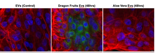 ドラゴンフルーツエクソソーム肌細胞への取り込み画像
