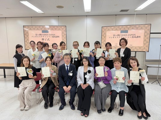一般社団法人日本エステティック協会(所在地:東京都千代田区、理事長:瀧川睦子)は、CODES JAPONソシオエステティシャン養成講座 第14期生の修了式を東京都内で開催いたしました。本講座は、フランスのソシオエステティシャン養成機関であるCODES (Cours D'Aesthetique a option humanitaire et sociale) と2004年に業務提携し、2007年より日本における養成をスタートした歴史あるプログラムです。
