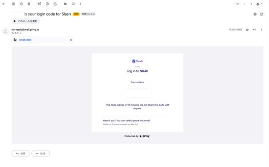 2 Privyでメールアドレスを入力。メールに届いたログインコードを入力