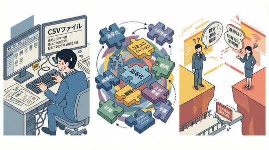 経営層がシステム導入を決定する際、現場担当者が日々行っている「システムAから受注データをCSVで吐き出し、システムBへ手入力する」といった細かい作業負担が見落とされがちです。