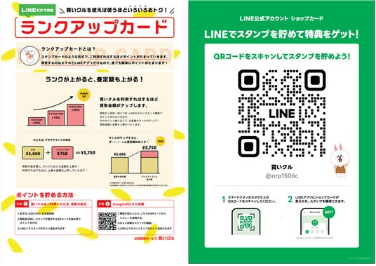 買いクル公式のランクアップカードはLINEで取得することができ、2回目以降の買取価格がUPするなどの特典が存在する。