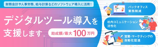 この助成事業で申請できる経費は、自社の事業活動のデジタル化のために新たに導入するデジタルツール(ソフトウェアまたはクラウドサービス)の購入費や利用費と、その導入に関連する費用で助成額は最大100万円です。
