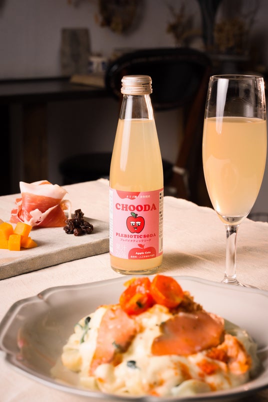 CHOODAは、プレバイオティクス(オリゴ糖・食物繊維)を配合した、腸想いのソーダです。