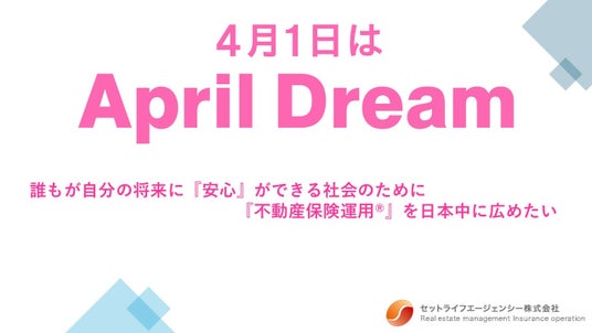 当社は、4月1日を夢を発信する日にしようとするApril Dreamに賛同しています。このプレスリリースは「セットライフエージェンシー」の夢です。