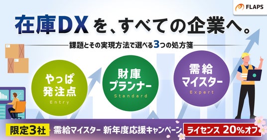 株式会社FLAPS(本社:大阪市北区、代表取締役:明石 和美)は、企業の「在庫」を「財産」へと変える『在庫最適化シリーズ』を提供し、欠品による機会損失や過剰在庫の解消を通じて利益最大化を支援しております。