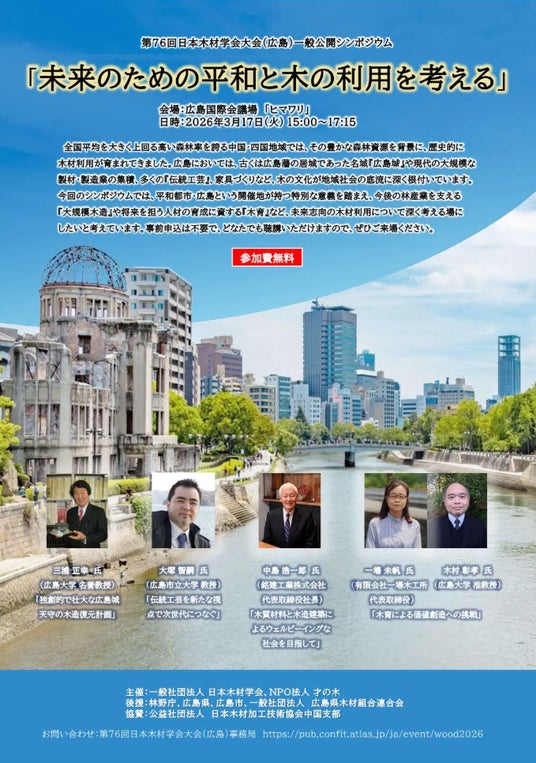 こうした背景のもと、2026年3月17日、平和都市・広島において日本木材学会公開シンポジウムが開催されました。