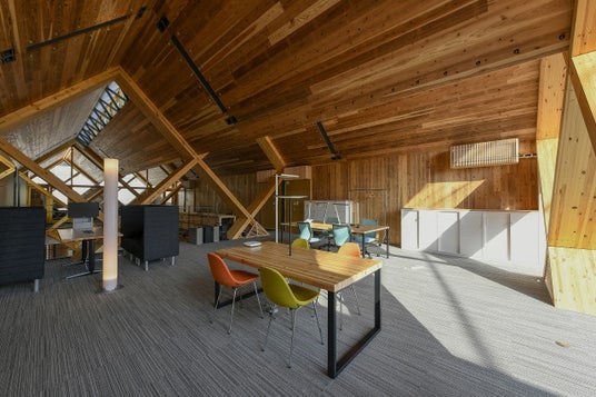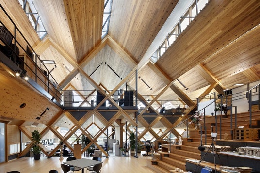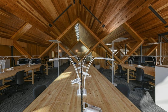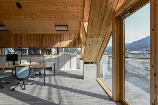 銘建工業本社事務所(岡山県真庭市)はCLTを使用した事務所です。