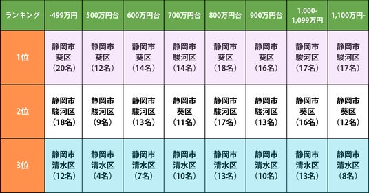 住まいの相談窓口「くふうイエタテカウンター」、家づくりやリフォームを考えている方向けの住宅イベント「くふうイエタテフェア」を運営する株式会社くふう住まい(本社:東京都港区、代表取締役社長:長井 健尚)は、静岡内の利用者を対象に「世帯年収別・新築一戸建ての住みたいエリア」を調査しました。