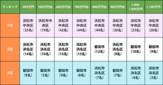 有効回答1,289名の結果、全体では浜松市中央区・静岡市葵区が上位となる一方、年収帯によって選ばれる街が大きく変わる傾向が明らかになりました。