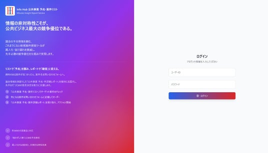 株式会社Info Hub(本社:東京都渋谷区、代表取締役:久田友和)は、2026年3月25日より、建設・公共ビジネス特化型の新規案件探索サービス「Info Hub」の提供を開始しました。